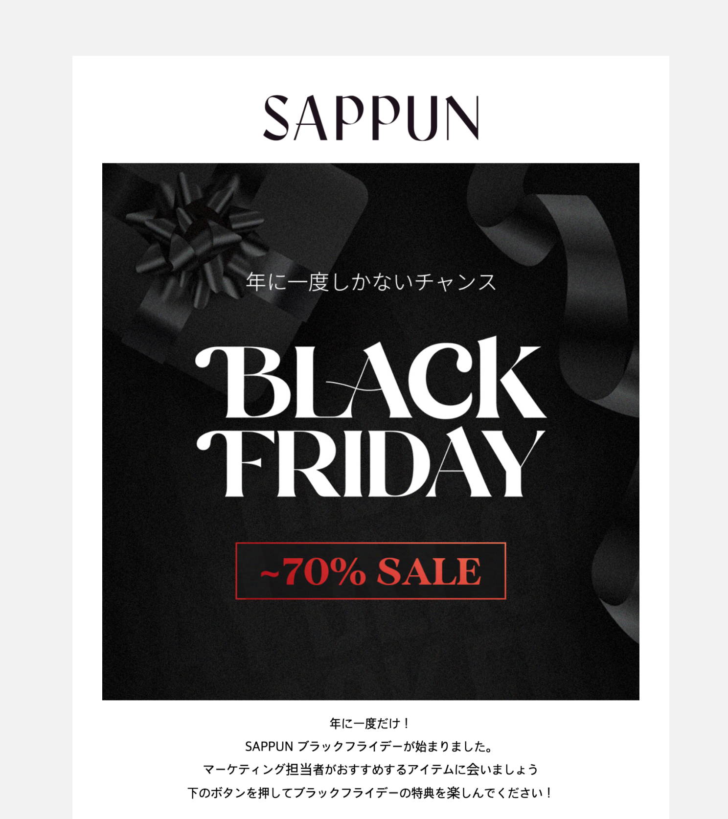 일본 고객에게 발송하는 사뿐의 블랙 프라이데이 이메일
