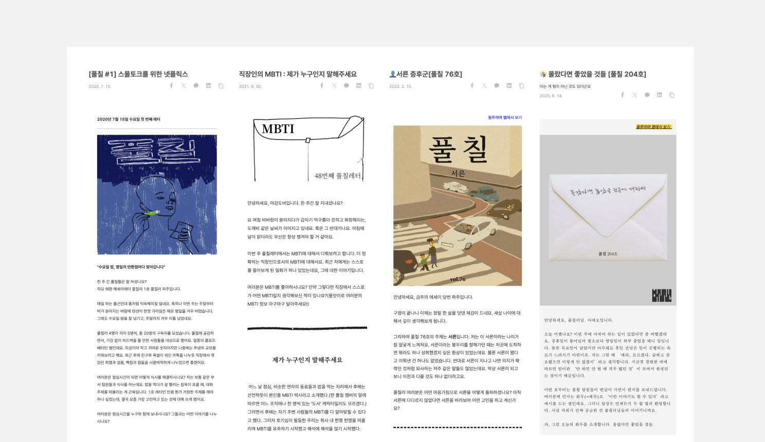 자연스럽게 <풀칠>을 시작할 때와 지금으로 소개를 해주셨네요. 뉴스레터는 어떻게 시작하게 되었나요?