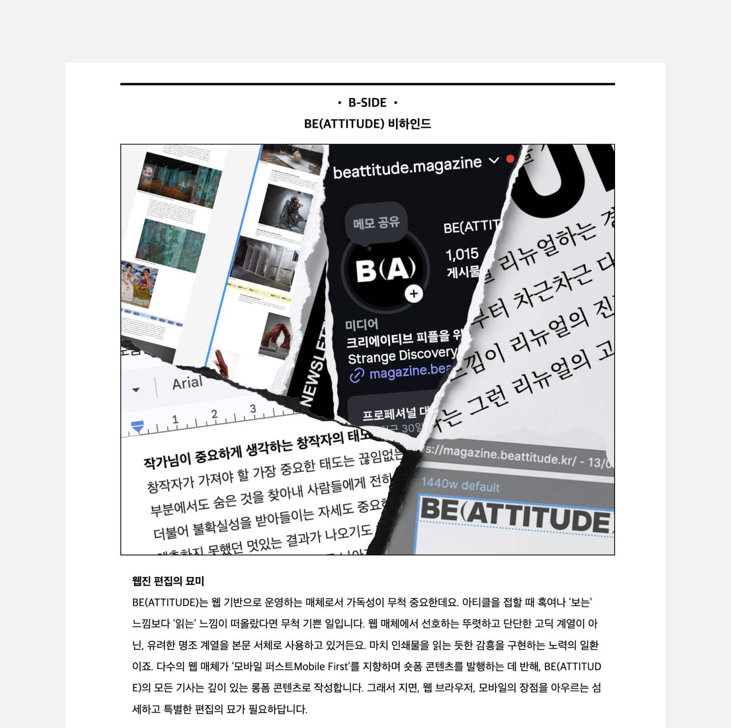 뉴스레터로 비하인드 이야기를 전하는 <BE(ATTITUDE)>