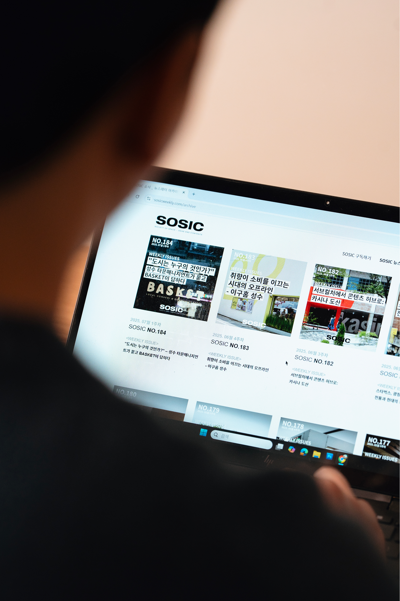 보근: 그전까지 건축은 가장 느리게 변하고 호흡이 긴 산업이라고 이해하고 있었는데, 점점 건축, 인테리어, 부동산 콘텐츠, 사회문화적 트렌드 간의 경계가 허물어지는 게 눈에 보였죠. 학교 다닐 때부터 건축이나 인테리어 월간지를 정기 구독했었는데, 이렇게 시류가 빨리 변하는데도 복합적인 관점을 전달하는 공간 매체가 없더라고요. 그때가 2021년이었는데 이런 매체를 기다리기보다는 직접 만들어보는 게 더 좋을 것 같았고, 그게 <SOSIC>의 시작이었어요.