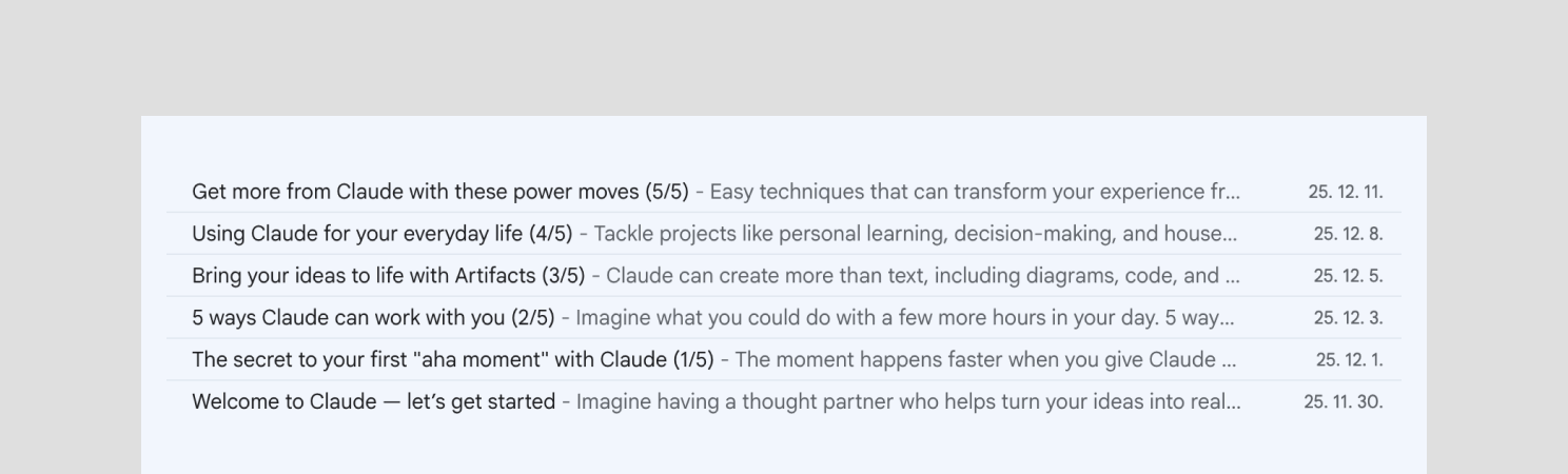 제목에 번호를 달아 오픈율을 높이는 클로드의 온보딩 이메일 전략