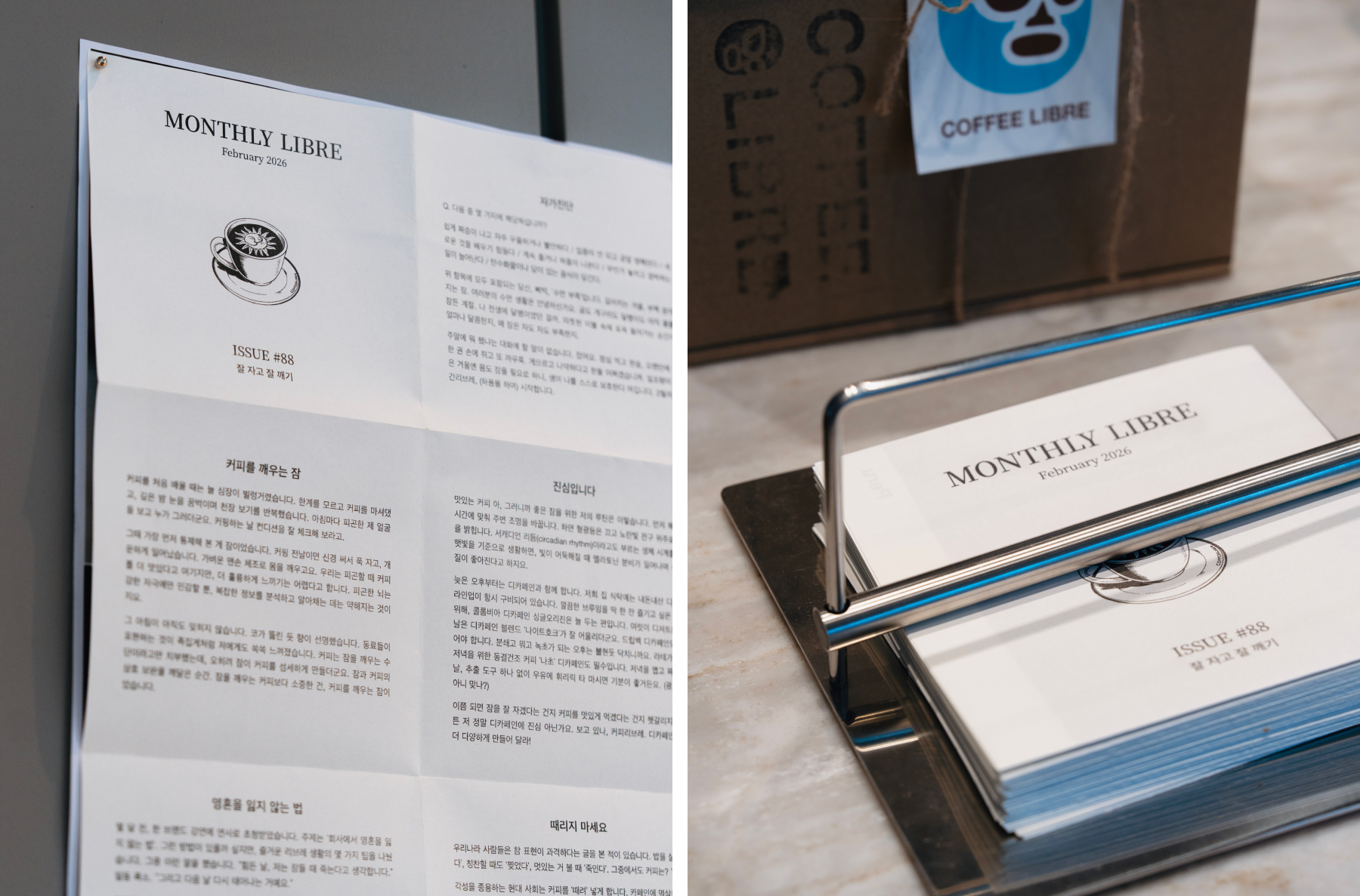 커피리브레는 기록에 진심인 것 같아요. 뉴스레터 외에도 홈페이지, 종이 소식지 등으로 커피에 대한 애정을 보여주고 계시죠.